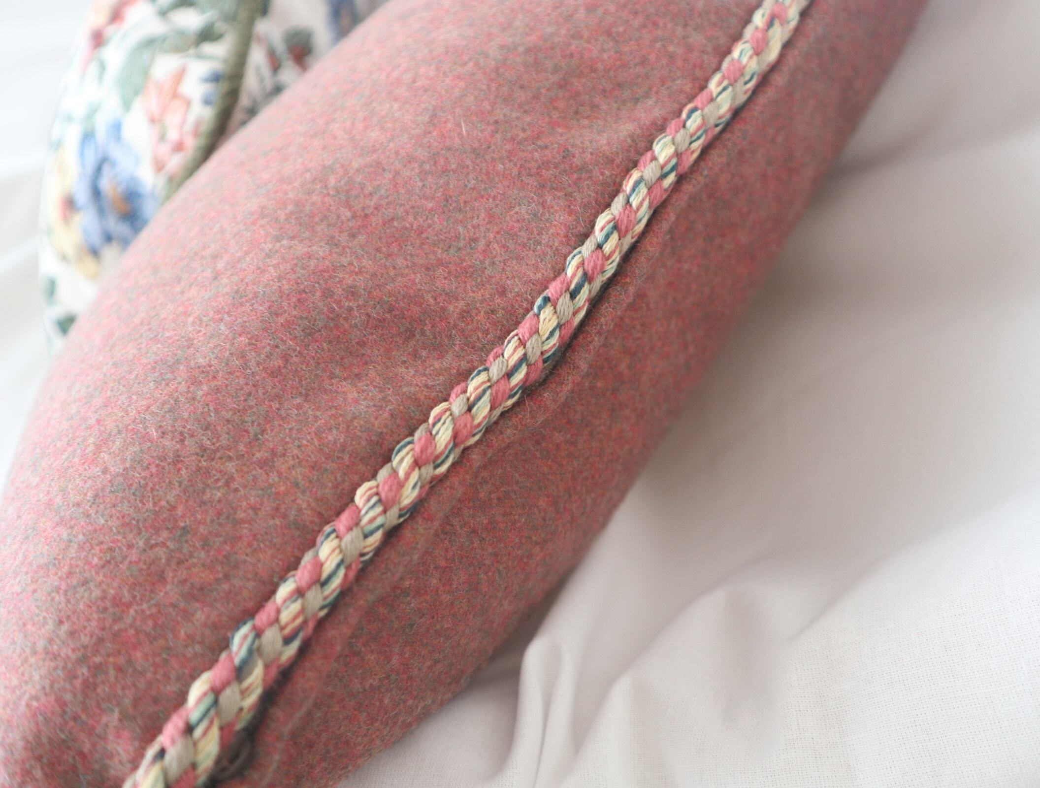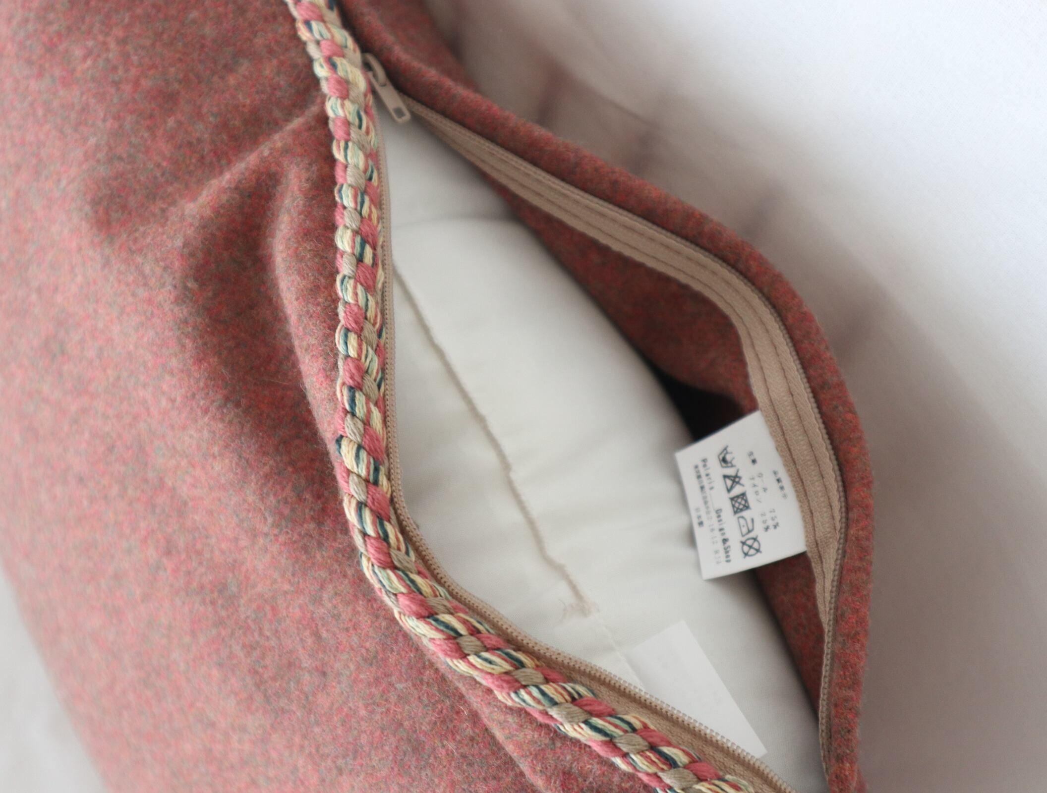 グレイッシュピンクのウール混生地は、やわらかな風合いと程よい温もりが魅力。落ち着いたトーンで、どんなお部屋にも優しく馴染みます。
