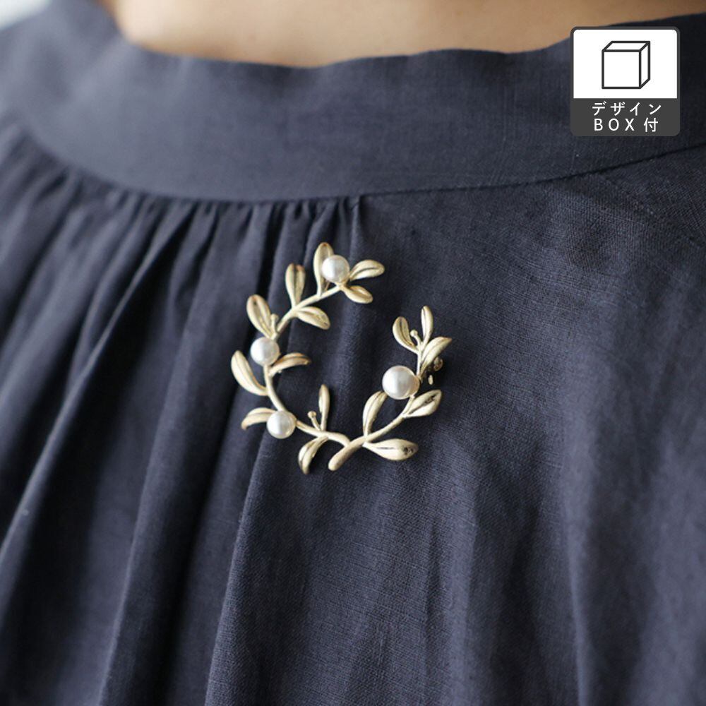 シンプルな装いにアクセントを添えてくれるリースのブローチです。
