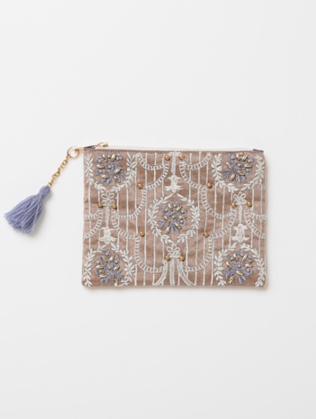 インドならではの色鮮やかなビーズ刺繍が施された、心ときめくファブリックポーチ。