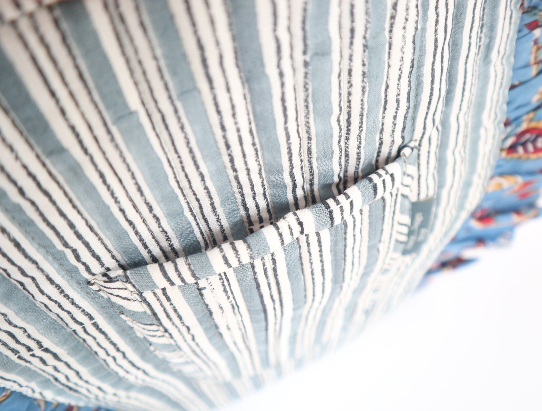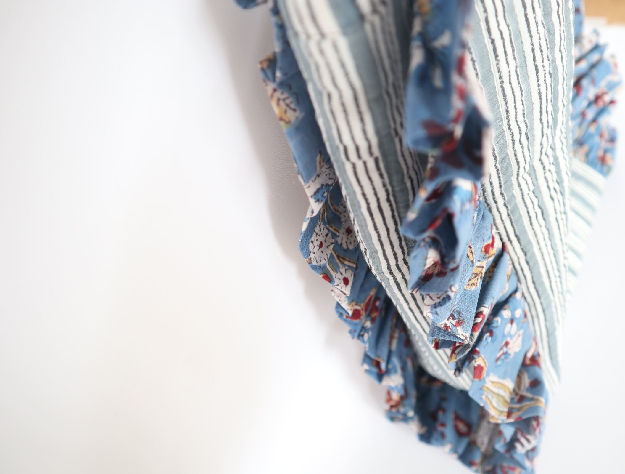 淡いブルーの花柄プリントを組み合わせた