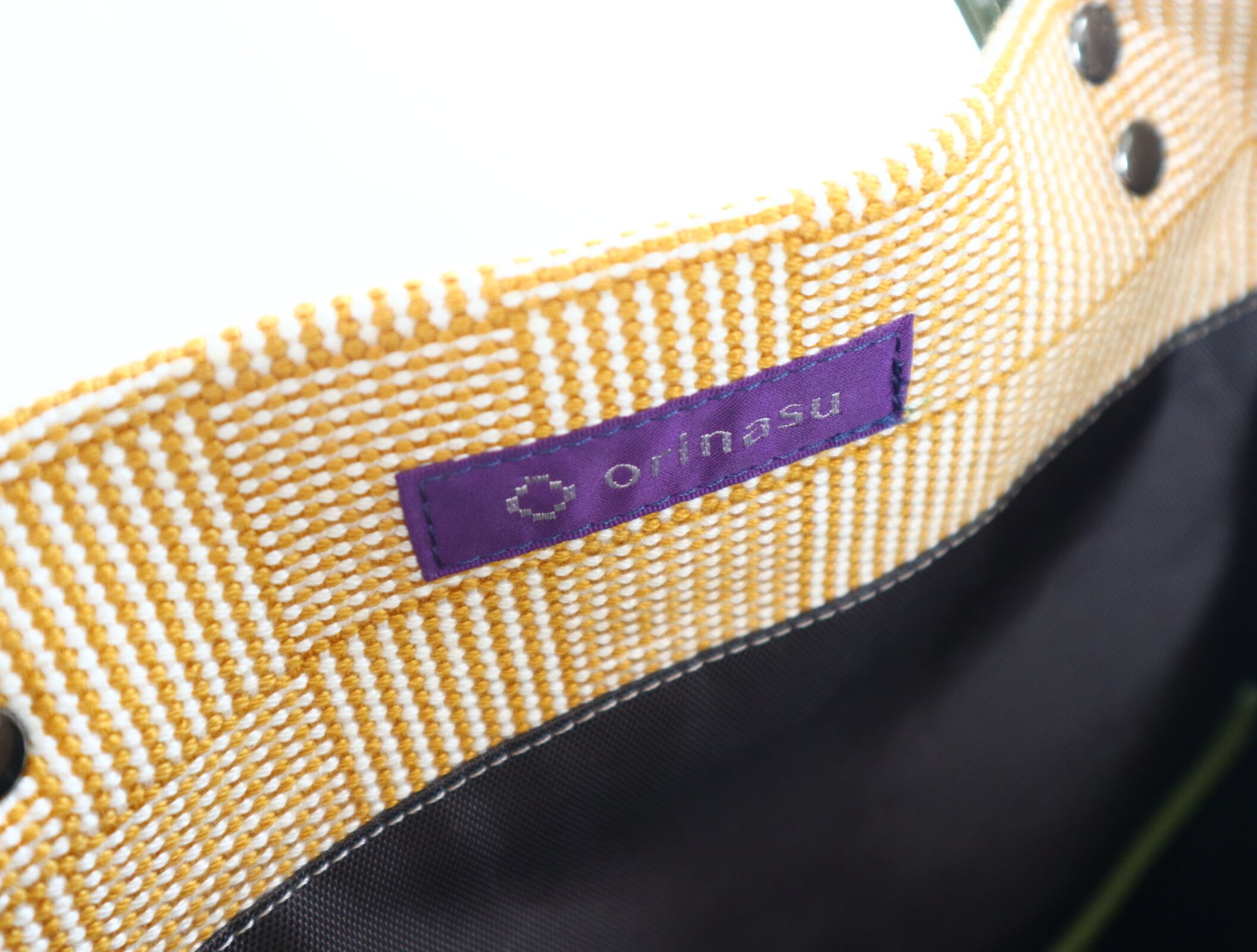 Orinasuのトートバッグ・ポーチ・タッセルは、織り機で一つひとつ丁寧に織り上げられた、手織り生地を使用しています。